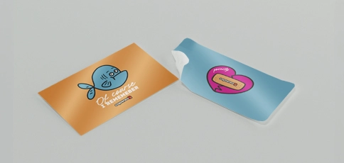 Podes escolher entre acabamento brilhante ou mate, conforme o efeito visual que pretendes alcançar. Ambos os acabamentos incluem laminação, o que acrescenta espessura, protege a impressão e melhora o aspeto final.