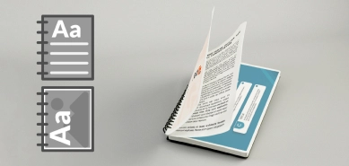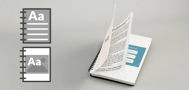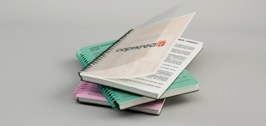 Pode optar por receber os seus documentos em folhas soltas, agrafadas, plastificadas ou encadernadas com espirais coloridas.